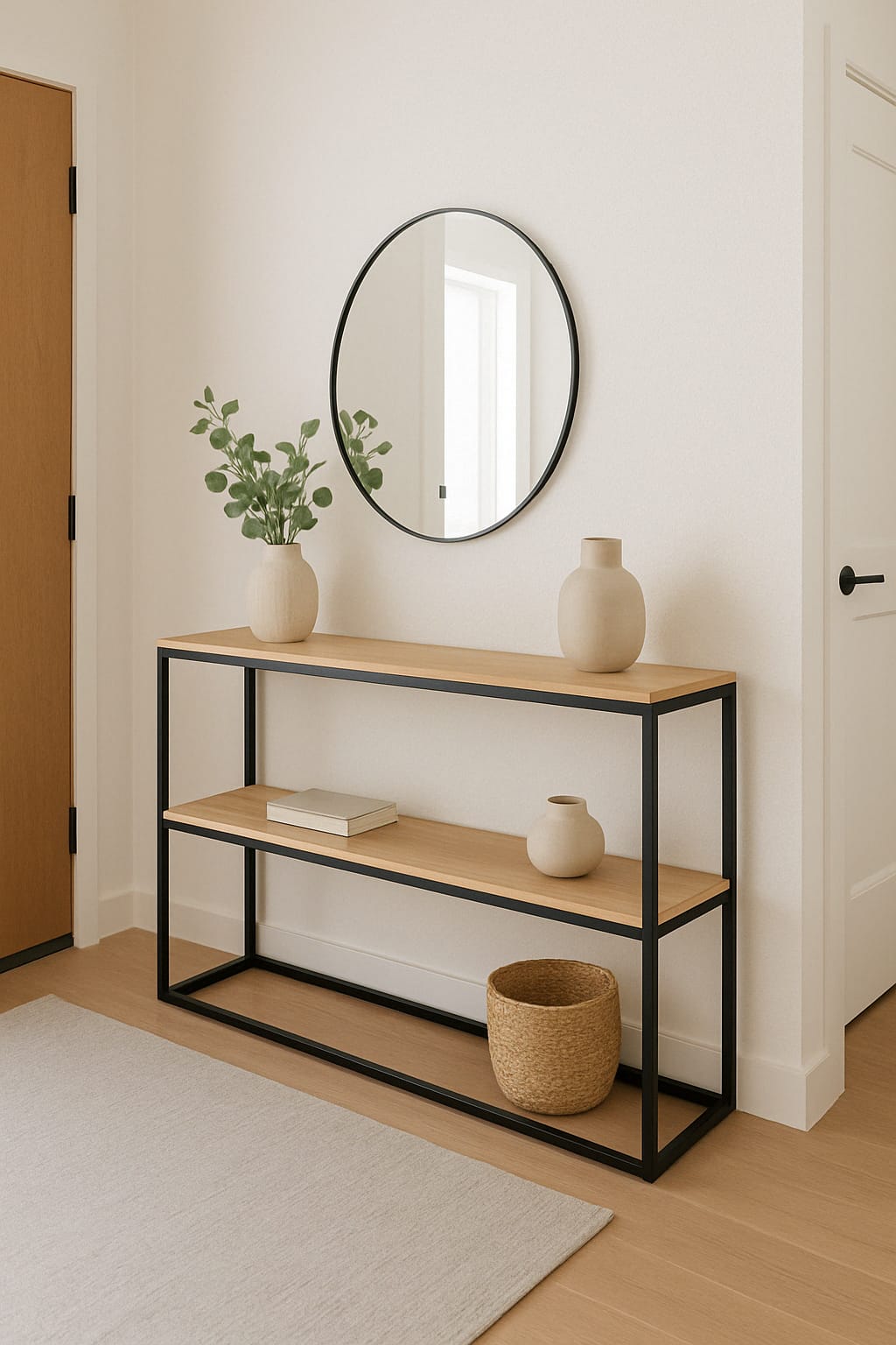 Cualidades: Este arrimo metálico te permite tener un espacio ordenado y con estilo industrial que combina en cualquier parte. Te permitirá tener tus objetos ordenados tanto en un living como en una sala de estar.