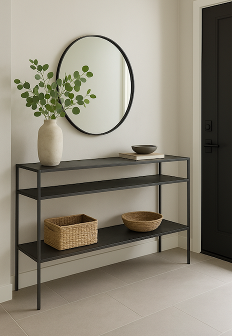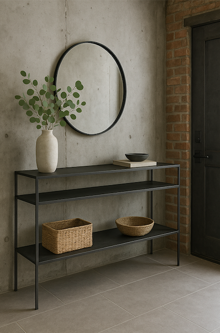 Cualidades: Este arrimo metálico te permite tener un espacio ordenado y con estilo industrial que combina en cualquier parte. Te permitirá tener tus objetos ordenados tanto en un living como en una sala de estar.