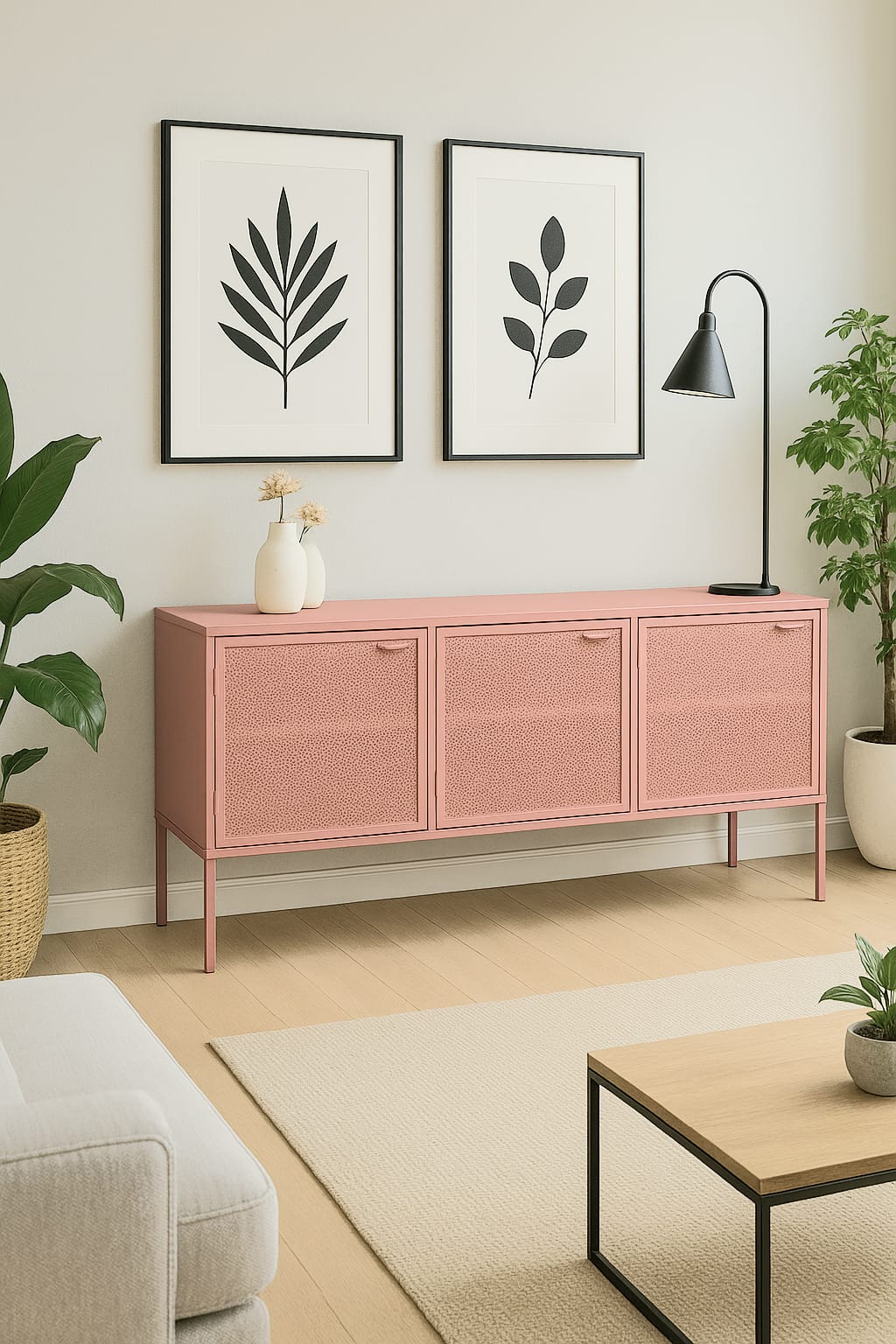 Cualidades: Este buffet metálico con puertas de malla microíerforada te permite tener un espacio ordenado y con estilo industrial que combina en cualquier parte. Te permitirá tener tus objetos ordenados tanto en un living como en una sala de estar.