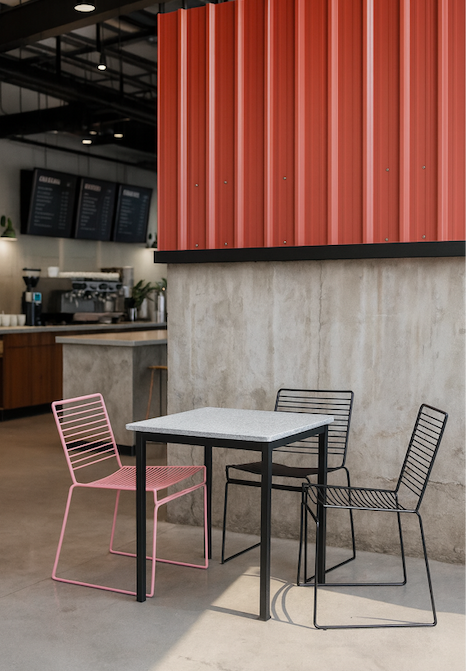 Terraza, comedor moderno, cafeterías, bares y espacios con decoración industrial o minimalista.